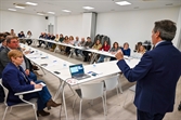 El presidente del GDR, Pedro Antonio Palomo, acompañó a la vicepresidenta de la Diputación, Sonia González, en la reunión convocada por esta institución en IFEDI, que contó con la participación de alcaldes, concejales, técnicos de los 15 municipios y el gerente de la Asociación.